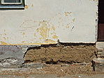 Nagyon rossz állapotú épületek, vakolathiány, repedések láthatók.