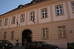Úri utcai homlokzatát, mely 8 tengelyes, 3 tagú főpárkány zárja a földszint felett övpárkány húzódik.