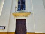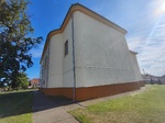 Templom bal oldalhomlokzatán karzatszakaszon egymás fölött két szegmensíves záradékú szalagkeretes ablak; hajószakaszon két darab szegmensíves záradékú szalagkeretes ablak. Szentély bal oldalán kétszintes sekrestye oldalhomlokzatán szalagkeretes ajtóval és ablakokkal.