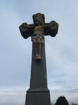A festése eléggé pattogzik le, de amúgy nem rossz az állapota. Érdekes, hogy a lenti Mária-szobor nem a talapzat tetején áll, mint rengeteg másik keresztnél, hanem egy külön fülkéje van.