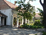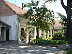 Csatlakozó beépítésben álló, L alaprajzú, földszintes épület, D-i véghomlokzata fölött kontyolt nyeregtetővel. K-i, utcai homlokzatának D-i széléhez timpanonos, falazott kapuépítmény kapcsolódik, középen kocsiáthajtóval, kétoldalt gyalogkapukkal. Az épület utcai homlokzatán kis kiülésű középrizalit, a rizalitban és a homlokzat szélein pilaszteres tagolás. Építtette a Szabó család a 19. század első felében, később a Tarjany család birtokába került. Az épületet megsemmisülése után 2004-2005 között újjáépítették, nyílászáróit is az eredetiek mintájára gyártották újra. É-i szárnyához folytatólagosan, a telek Ny-i határára befordulva modern épületrészek épültek.