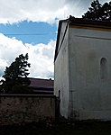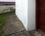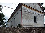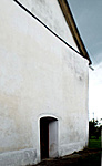 Erősen vizesedik a templom, nyomai már egészen magasan láthatók. Talán némi segítséget jelentene, ha a lábazata egy részénél a betont felszednék, és az egyész templomot kaviccsal vennék körbe, hogy legalább egy kicsit levegőzhessen. Gyanítom azonban, hogy ez messze nem lenne elég.