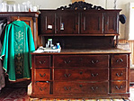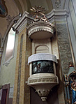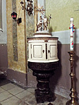 A szószéken a festett domborműves kép a "Magvetőt" ábrázolja.
