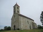 A település belsejében kisebb dombon kerítéssel övezve szabadon álló, keletelt, egyenes szentélyzáródású templom, nyugati homlokzata felett behúzott toronnyal. A templom nyeregtetejét és gúlasisakját cserépfedés borítja. A hajó és a torony vakolat nélküli, kváderekből épült, a hajóval azonos szélességű és magasságú gótikus szentély keleti sarkait átlós támpillérek erősítik. Egy további támpillér áll a hajó és a szentély déli falának találkozási pontjánál. A templomon egyszerű ferde síkú lábazat fut körbe. A nyugati homlokzat tengelyében félköríves záradékú ajtó nyílik, mely körül körbefordul a lábazat. Felette, az oromfalban körablak, háromkaréjos mérművel. A torony nyugati falsíkja a hajó nyugati falsíkjával megegyezik. A kétszintes torony alsó szintjén a déli, a nyugati és az északi oldalon, a felső szinten pedig oldalanként egy-egy, azonos formájú, félköríves záradékú ikerablak nyílik. Az ikerablakok osztója kör keresztmetszetű, az ívek trapéz alakú vállkövekről indulnak. A hajó déli homlokzatának nyugati szakasza nagyobb kváderekből épült fel a keletinél. A földszinten lépcsős kiképzésű bélletes kapu nyílik. A félköríves záradékú kapufülkében párnatagos lábazaton álló, kör keresztmetszetű, bimbós fejezetű oszlopok állnak A fejezetekről nyolcszög keresztmetszetű archivolt követi a kapufülke belső ívet Maga a kapu álló téglalap formájú, tagozat nélküli. A szemöldök feletti ívmező dísztelen. A lábazat a kapu környékén lépcsőzetesen visszaugrik és igazodik az oszloplábazatok síkjához. A hajó déli homlokzatán három ablakot találunk. A nyugati ablak osztósudaras mérműves gótikus nyílás, míg a másik kettő félköríves záradékú, tölcséresen szűkülő román stílusú ablak. A hajó gótikus ablakával egyező formájú ablak van a szentély déli homlokzatán is. Az északi hajófalon a kétféle kváderfalazat élesen elválik egymástól. A szabályosabban rakott, kisebb kváderekből álló falszakaszban elfalazott, szegmentíves nyílás látható. A nyugati szakaszban egy kicsi, keskeny, félköríves záródású, élszedett keretű ablak nyílik, tőle nyugatra egy nagyobb félköríves, ez alatt pedig egy álló téglalap alakú, élszedett ablak található. A három ablak utólagos. A tető alatt egyszerű kőpárkány fut.