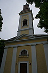 A templom önmagában álló, téglalap alaprajzú épület. Egyhajós szentélye a nyolcszög három oldalával záródik. Főhomlokzatát négy pilaszter díszíti. A főpárkány felett kisméretű timpanon. Innen nyílik a bejárat, felette félköríves ablak. Főhomlokzat előtti tornyának sarkain lizénák, a felső szintjén félköríves záródású ablakok. Az ablakok vakolatkeretesek. A hajó ablakai szegmensívesek. A sekrestye a templom északi tömegéhez csatlakozik. Teteje kontyolt nyeregtető, a torony törtvonalú sisak alakú bádogfedésű.