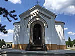 Tetődombon, szélesebb posztamensen álló kripta. A nyeregtetővel fedett hajóhoz visszalépő, alacsonyabb félköríves apszis kapcsolódik. A hajóval azonos magasságú keresztszárny mindkét végén félköríves záródású.