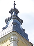 A torony déli homlokzatának földszinti szakaszán álló téglalap alakú, kannelúrás díszítésű kőkeretes ajtó nyílik. A szemöldökkő zárókő imitációjában csillag látható.