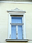 Udvari homlokzatán mindkét szárnyon, konzolokon nyugvó függőfolyosó.
