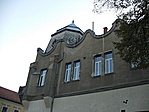 Zártsorú beépítésben álló, L alaprajzú, egyemeletes saroképület, az udvari szárny első traktusában alápincézett. Nyeregtetős, cserépfedésű épület. Az épület szemöldökgyámos kőkeretes kapuja a homlokzat déli, szélső tengelyében nyílik. A földszinten sávozott vakolású középrész pilaszterekkel kiemelve. Az emelet sima homlokzatának középrészén ion pilaszterek. Az emeleti ablakok fölött aediculás szemöldökpárkányzat. A középtengelyében 3 vaskonzol által tartott öntöttvas rácsozatú erkély. A homlokzatot teljes szélességében konzolos főpárkány és attika zárja le. Mai állapotában a földszinten a főhomlokzat mögött átjárót alakítottak ki a XX. században, így a főhomlokzat földszinti ablakai ma kirakatok, az átjáró másik oldalán modern üzletet alakítottak ki. Az udvari homlokzat emeletes részén végig vasrácsos függőfolyosó fut végig, de az épülethez még két földszintes lakás is kapcsolódik.
