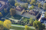 Kettő, utcavonalon, szabadon álló, téglalap alaprajzú, egyemeletes, manzárdtetős épületből álló együttes, a két épület között kettőzött kapuzattal, az együttestől délre további kapuzattal.