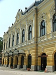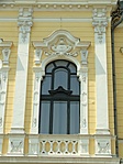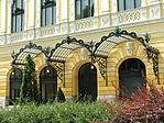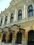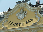 Fekete Sas Szálló, eklektikus - neobarokk, 1905. Tervezte Pártos Gyula. Belsőben reprezentatív nagyterem színpaddal és páholysorral.