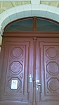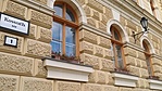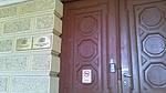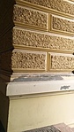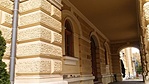 A bal sarokban hengeres lépcsőház építmény, mellette boltíves kapu vezet ki a hátsó utcára. Az itteni homlokzat hasonló az eddigiekhez.