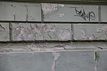 Romló állapotú homlokzat, festés- és vakolathibák. Négyes alá erősen.