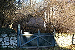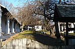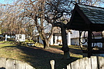 Kertben nyeregtetős melléképületek.