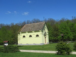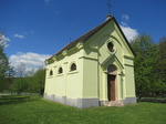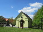 R.k. kápolna, romantikus (1832) és fa harangláb.