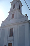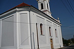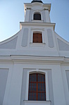 A község közepén, orsósan kiteresedő főutcában szabadon áll, ÉK-DNY irányban. Főhomlokzata 3 axisos, középen a síkból alig kilépő homlokzati toronnyal. (Környezetében jól érvényesül az impozáns, hatalmas külső, tömege és részletei a kor későbarokk templomépítészetének vonásait idézi, nem a református puritán templomokét.) Sima szalagok osztják a 3 axist. A középső nagy falmezőben szegmensíves kapu ül, vasalása eredeti, kerete kő. A hatalmas kórusablak parapetje ráül a kapu szemöldökpárkányára, szinte egy motívummá fogva össze a 2 nyílást. A főhomlokzat 2 oldalsó axisa 1-1 hatalmas, tömör faltükör. Klasszicista tagolású főpárkány fut körül az épületen. Az 1. toronyemeleten díszes vakolt keretben nagy padlásablak. Erős osztópárkány fölött a 2. toronyemelet sarkain ión fejezetes-lábazatos lizéna. Félkörös záródású, keskenyen keretezett harangablakok. Markáns órapárkány, óra nélkül. Bádog toronysisakjának főeleme egy négyoldalú doboz. Íves oromfal, sarkain 1-1 kő váza. Az oldalhomlokzatokat széles sávok osztják 4 mezőre, bennük 3 ill. 2 nagy, félkörös záródású ablak, a K. falon oldalkapu is, azonos a főkapuval. A végfal egyenes záródású, 1-1 enyhe ívvel csatlakozik az oldalhomlokzatokhoz. Kontyolt nyeregtető palafedéssel.