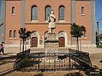 E hasábon nyugvó kisebb lemezen emelkedik a szent püspöki ornátusba öltözött, égre tekintő alakja, mely jobbjában feszületet tart, s feje körül csillagos glória lebeg.