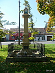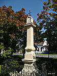 A Szt. Sebestyén plébániatemplom előtt parkosított tér déli részén, díszes kovácsoltvas korláttal elkerített, kis területen áll a képoszlop.