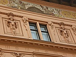 A toszkán reneszánsz motívumokkal díszített emeleti homlokzatok egyes és páros ablakai egyenes záródásúak.