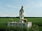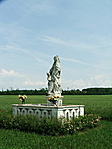 Útelágazásban lévő, jó állapotú, gondozott környezetben lévő szobor.