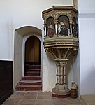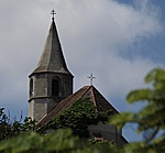 R.k. templom, gótikus, 14. sz. Boltozata barokk, 17. sz. Erődített fallal körülvéve.