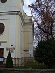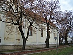Meglehetősen csúnyán mutat a 2000-2001-es felújítást jelző tábla körül a málladozó vakolat. :( A hajó jobb állapotban van, a táblával is jelzett védett fákon sajnos már nincs levél, nyáron vélhetően sokkal szebbek.