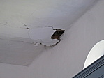 A tető beázott ezért a belső patics kis darabon leszakadt. Kívülről jó állapotban van, ide be tudtunk menni, rendezett. A hátsó rész kissé vizesedik, a kert rendezett.