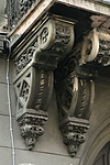 A kétemeletes épület 7 ablaktengelyes vakolatsávos homlokzatát a földszint fölött gótizáló konzolokkal díszített övpárkány, a második emeleten mérműsor fríz-díszes könyöklőpárkány tagolja és két részes, vakmérműsor feletti, mélyített keretezett gótizáló képszék-mezőket közrefogó, erőteljesen kiugró koronázó-párkányt tartó, leveles konzolsoros főpárkány zárja le. A földszinten mélyített mezőkben csúcsíves falnyílásokat alakítottak ki. A tagozatos keretezésű kapu nagyobb a többinél. A csúcsíves első emeleti falnyílásokban pálcatagos neogótikus, csúcsíves osztású nyílászárók láthatók. Középen, a kapu felett, tört-íves kőkonzolpárokon, - öntöttvas, romantikus, nap motívumos betétekkel díszített - erkély helyezkedik el. A második emeleti, állótéglány alakú ablakokban is pálcatagos neogót nyílászárók kaptak helyet.