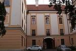 Zártsorú beépítésű, U alaprajzú, kétemeletes, megyeháza (trsz.: 1995) - ún. Barkóczy-szárny -, háromtengelyes, timpanonos középrizalittal, a timpanon oromzatán és az emeleti ablakok szemöldökén gazdag rokokó díszítéssel. A timpanon két oldalán egykorú tetőablakok. A DNy-i szárnyhoz az udvaron U alakban gazdasági szárnyak csatlakoznak, későbbi emelet ráépítéssel és tetőtér beépítéssel. Az É-i szárny középtengelyében kocsiáthajtó, vasrácsos mellvéddel. A megyeházához az utcavonalban L alakú, egyemeletes épület csatlakozik, mindkét szinten beüvegezett árkádos folyosóval. A második emelet kivételével boltozatos terek. Díszes kovácsoltvas kapuk, és lunettarács, 1758-1761 (Fazola Henrik). Épült Barkóczy Ferenc püspök-főispán kezdeményezésére 1748-1856 között (építész: Franz Matthias Gerl). Ny-i szárny, 1838-1840 (építész: Markmüller József). Az udvar ÉK-i részén szabadon álló, négyzetes alaprajzú, négyszintes, kontyolt nyeregtetős börtönépület (trsz.: 1996). Főhomlokzatán lapos, íves oromzatos, két emeletet átfogó rizalitban Kálvária-ábrázolás (Singer Mihály ?). Boltozatos belső terek. 18. századi kovácsoltvas rácsok. A hátsó homlokzatból kiemelkedik az íves záródású kápolna. A börtönépület 1760-1766 között épült (építész: Franz Matthias Gerl). A második emelettel történő bővítés 1838-ban épült (építész: Markmüller József).