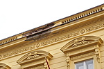 Az épület állapota romlik. A tetővel valami gond lehet, mert egy erőteljes beázás rombolja a párkányt.