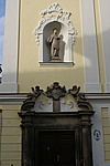 A Ny-i épületszárny törtvonalas, címerrel díszített oromfallal fordul az utca felé. Szecessziós, 19. század eleje.