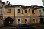 Zártsorban álló, L alaprajzú, egyemeletes, nyeregtetős épület. A tetőn síkba fektetett újabb keletű ablakok. Enyhén előreálló kéttengelyes középrizalit emeletén félköríves fülkében Immaculata-szobor. Az udvari szárny mindkét oldalán a földszinten árkádív, az emeleten oszlopos loggia.