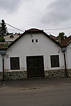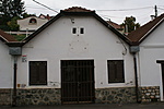 Középen kétszárnyú régebbi ajtó vasráccsal. Baloldalt nagyobb ablak vaslemezből készült ablakráccsal, jobboldalt kis négyzet alakú, rácsos ablak. Az oromzatban két kis padlásablak. Terméskő lábazat.
