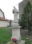 A templomkertben még egy Nepomuki Szt. János-szobor található: újabb talapzaton áll, a szent kezében rokokó pajzson Máriát a gyermek Jézussal ábrázoló dombormű látható. 18. sz. vége.