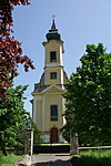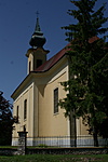 Egyhajós, egy homlokzati tornyos, íves szentélyzáródású, a szentély felől kontyolt nyeregtetős keletelt templom. A templomtömegből kiemelekedő hajó homorú falszakaszokkal kapcsolódik a szentélyhez és a Ny-i, bejárati traktushoz. A torony enyhe rizalitot képez a Nyi homlokzaton.