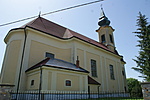 Egyhajós, keletelt, Ny-i homlokzati tornyos, íves szentélyzáródású, a szentély felől kontyolt nyeregtetős templom. A hajó homorú falszakaszokkal kapcsolódik a szentélyhez és a Ny-i, rizalitszerűen kiemelkedő bejárati szakaszhoz. A szentély É-i oldalán féltetős sekrestye. Csehboltozatos hajó és szentély, a hajó Ny-i oldalán karzat. Falképek: 1775-1776 (Johann Lucas Karcker - elpusztult, vagy a 20. századi átfestés takarja). Berendezés: 18. század második fele; főoltárkép, mellékoltárkép: 1773-1776 (Johann Lucas Karcker); keresztelőmedence: 1815 (Giovanni Adami, Mozer József). Építtette az egri káptalan, korábbi, 18. század elején emelt templom helyén.