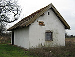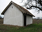 6×4 méteres, zzabadon álló, nádfedésű, kontyolt nyeregtetős épület, hosszoldalán zsalugáteres