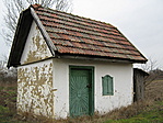 3×4 méteres, szabadon álló, cserépfedésű, nyeregtetős épület, hosszoldalán sugaras díszítésű faajtóval és zsalugáteres ablakkal. Népi műemlék.