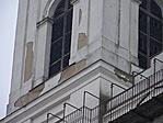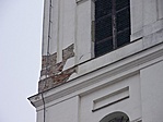 Főként a déli tornyon több, nagy méretű málló vakolatú folt látható. Ezektől eltekintve a templom egészen jó állapotú.