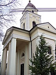 Egyhajós, egy homlokzati tornyos, egyenes záródású, keletelt templom, a nyugati homlokzat előtt timpanonos portikusszal, az oldalhomlokzatokon timpanonos oldalrizalitokkal.