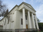 A hajó keleti végén timpanonos portikusz. A hajó északi oldalán előcsarnok.