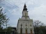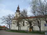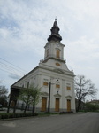 Egyhajós, egyenes záródású templom, Ny-i homlokzata középtengelyében toronnyal (magasítva 1821-ben), azon tűzkiáltó erkéllyel, a hajó K-i végén négy ion oszlopos, timpanonos portikusszal. Síkfödémű hajó, mindkét végében oszlopokra támaszkodó kétemeletes karzat. Berendezés: 19. század közepe. Orgona: 1908 (Angster-orgonagyár). 1755-ben épült (építész: Csermák Vencel) korábbi templom bővítésével. 1907-ben felújították.