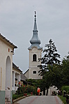 A község főútvonalától beljebb a plébániaépülettel együtt körülkerített telken álló téglalap alaprajzú templom.