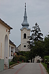Az utcavonaltól beljebb, körbekerített telken, a lelkészlak mögött, szabadon álló, egyhajós, téglalap alaprajzú, D-i homlokzati tornyos templom, É-i záródása felé kontyolt nyeregtetővel, a hajó K-i oldalához csatlakozó előcsarnokkal. É-i hajófalon befalazott római sírkő. Síkmennyezetes hajó, U alakban faszerkezetű karzat. Berendezés: szószék és karzat, 18. század vége; úrasztala, 1885; keresztelőmedence, 1888. Orgona: 1893 (Angster József). Épült 1748-ban (építész: Fellner Jakab?). 1786-ban a templomhajót meghosszabbították és ekkor épült órapárkányos tornya is. 1892-1893 között átalakították, falait megmagasították és új fedélszék készült (építész: Mikos Nándor).