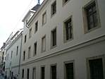 Zártsorú beépítésű, három körülépített udvaros, többször átalakított középület a Királyi Pál utca sarkán, több periódusban épült kétemeletes barokk maggal, egy- és kétemeletes későbbi toldalékokkal; barokk magjában középkori templom maradványaival.