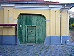 A déli oldalon a homlokzat hátraugrik. Déli irányba néz egy ajtó és egy ablak, a hátraugró részen pedig egy nagy, egyenes záródású kapu található. Sarkain íves gyámkövek vannak, a kapuszárak tagolt fejezetűek, mellettük egy-egy lizéna elé ugró, páros pilaszterek emelkednek. Felettük az egész épületen körbefutó, tagozott főpárkány golyvázódik. A kontyolt nyeregtetőt cserép fedi.