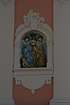 Utcai, földszintjén vakolatsávozott homlokzata öt tengelyes. Jobb szélső tengelyben félköríves záródású, meszelt kőkeretes, záróköves, rokokó motívummal díszített kapu. Mellette két kőkeretes, egyeneszáródású, apácarácsos ablak, majd szembeforduló volutákkal és zárókővel záródó, füles, kőkeretes apácarácsos ablak és bejárati ajtó. Az erőteljes kiülésű osztópárkány felett a hat tengelyes emeleti homlokzaton a fejezetes falpillérek között ülnek a gazdag stukkó kötény- és szemöldökdíszes, füles, kőkeretes ablakok ill. a jobbról negyedik tengelyben köténydíszes, vállköves, záróköves, stukkódíszes szoborfülkében dombormű: gyermekét adoráló Mária. A gazdagon tagolt főpárkány felett manzardtető ablakokkal.