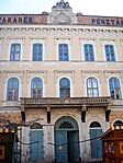 A kétemeletes, romantikus stílusú épület főhomlokzata 3 + 7 + 3 ablaktengelyes. Két bemélyített falmező által közrefogott, kissé kiugró középrizalitja felett oromfal emelkedik TAKARÉKPÉNZTÁR felirattal, megtört keretű, attikaszerű középrészén a magyar címer domborműves ábrázolásával. Fölötte ülő nő szobra látható jobb kezénél rokkával, baljánál méhkassal. Első emeletén középerkély helyezkedik el. A főhomlokzati főpárkány konzolsoros, a közbenső mezőkben virágos kazettadísszel. Az ablakok szegmensívvel záródnak, felettük vízszintes szemöldökpárkány. Mellvédjük rozetta- és ívsordíszes. A hátsó homlokzat 11 tengelyes, díszítőelemei a főhomlokzatéival egyeznek. A földszinti falsík sávozott, közepén egy nagy méretű, lunettás bevilágítóval ellátott kapuval. Ettől jobbra és balra 5-5 kisebb, lunettaablakkal koronázott ajtó látható. Az átjáróház két kapualja boltozott, öntöttvas, sugaras kapu- ablakráccsal, öntöttvas kerékvetőkkel.