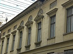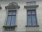 ornamentikával. Mindkét homlokzat három középső tengelye hangsúlyos kialakítású, háromszögű timpanonos szemöldökpárkányokkal, felette félköríves ornamentális tükrökkel, a mellvédben ballusztráddal.