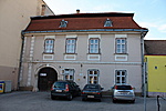 Az emeletes épület a jobb oldali telekhatárra is ráfordul öt tengely hosszban.